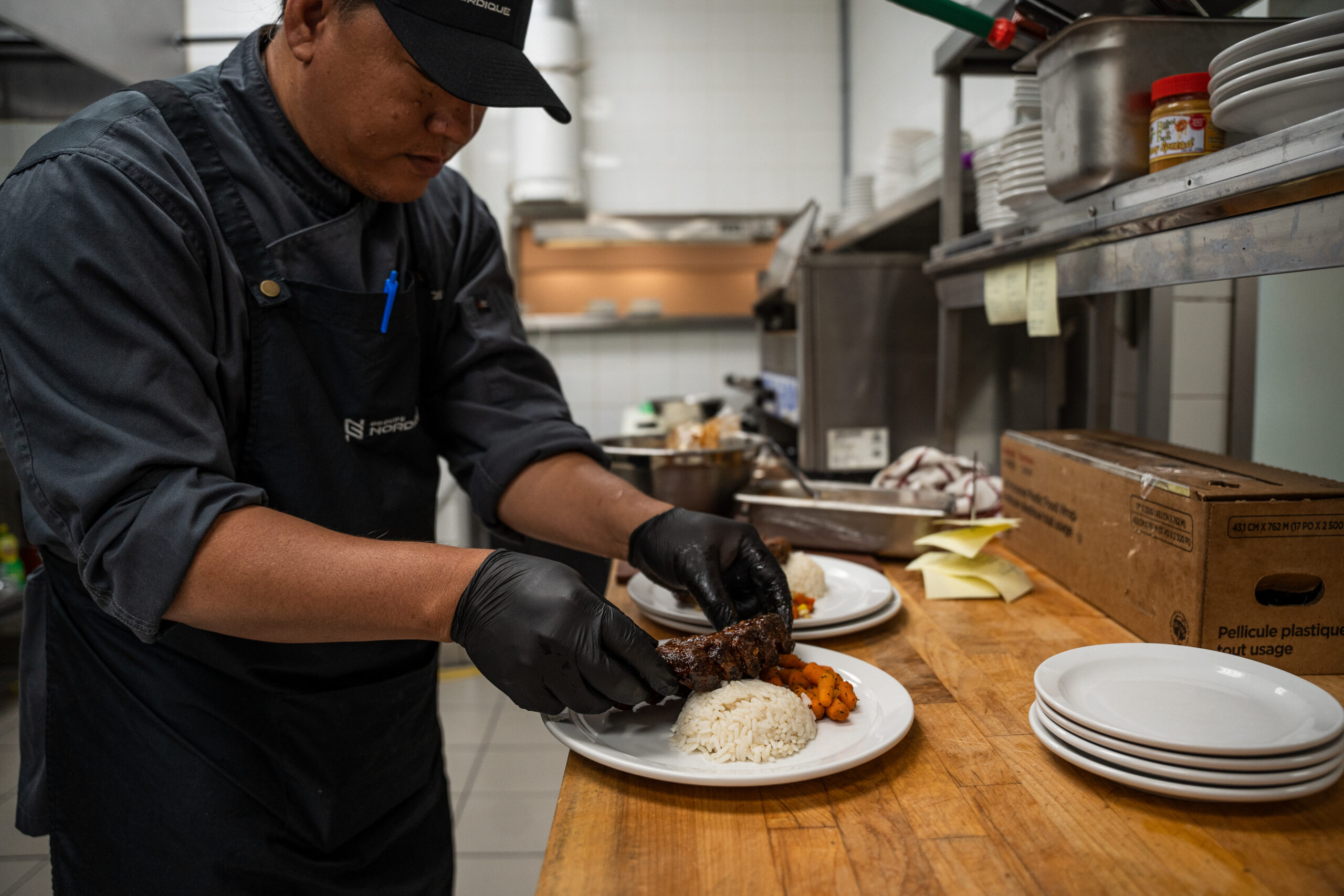 Située sur l’avenue Brochu, au carrefour Labaie, Restauration Nordique offre une solution de restauration complète pour les entreprises et les chantiers de la Côte-Nord. Notre établissement accueille vos équipes pour des déjeuners et des dîners variés, avec des menus qui évoluent fréquemment et un comptoir proposant des plats surgelés prêts à emporter. Nous offrons également un service de traiteur capable de servir jusqu’à 500 convives, en format boîtes à lunch ou en menus gastronomiques en plusieurs services.